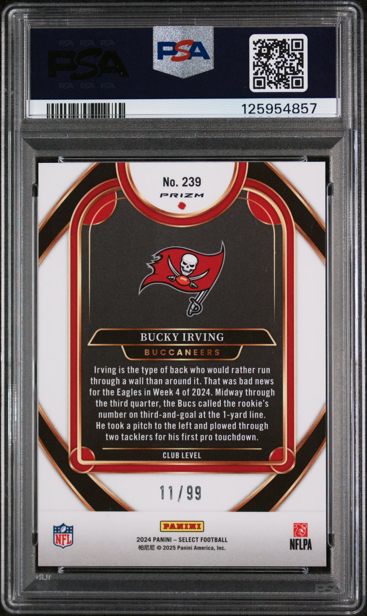 Step into the future of football card collecting with this stunning 2024 Panini Select 239 Bucky Irving Blue Prizm card. As an exceptional piece from the trusted manufacturer, Panini, this card heralds the new era of football legends. This listing features the extraordinary Bucky Irving, an exciting player from the Tampa Bay Buccaneers.