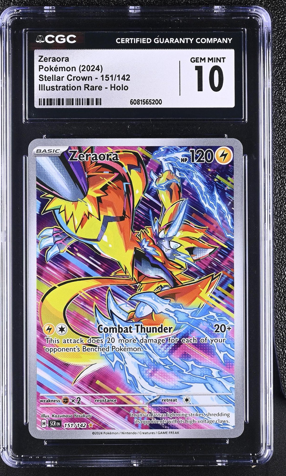 Step into the extraordinary world of Pokemon with this flawless 2024 Pokemon 151/142 Zeraora card from the Stellar Crown set. Regarded as an Illustration Rare, this card is a phenomenal addition to any collection, exuding an aura of rarity and uniqueness.