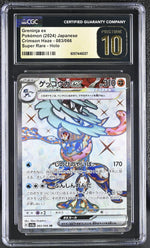 Whether you're a seasoned collector or a budding enthusiast, this Greninja ex card from the Crimson Haze Super Rare - Holo set is an exceptional piece that will undoubtedly elevate your collection. Its perfect grading and super rare status make it an irresistible treasure, a testament to the exhilarating world of Pokemon. Don't miss the opportunity to own this remarkable piece of Pokemon history.