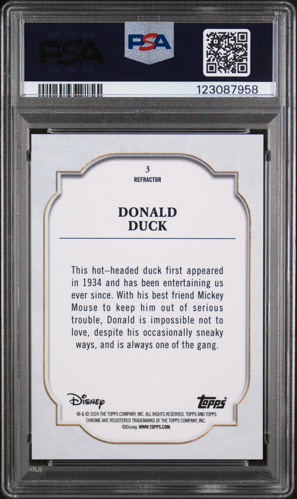 Whether you're a seasoned collector, a Disney enthusiast, or someone new to the sports card hobby, this 2024 Topps Chrome #3 Donald Duck card would make a fantastic addition to your collection. Its beauty, rarity and high grade make it a must-have! Don't miss out on the opportunity to own this magnificent piece.