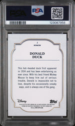 This card showcases the legendary character Donald Duck in all his splendor, a beloved figure that's been captivating hearts globally. The card is embellished with a Refractor finish, a feature that adds a unique sparkle and elevates the overall look of the card, making it an absolute standout in any collection.