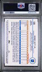 Crafted by the renowned manufacturer Topps, this card is a part of the 'Topps Chrome' brand, known for its high-quality print and unparalleled attention to detail. The card number is #120, a number that captures a moment in the illustrious career of Bobby Witt Jr.
