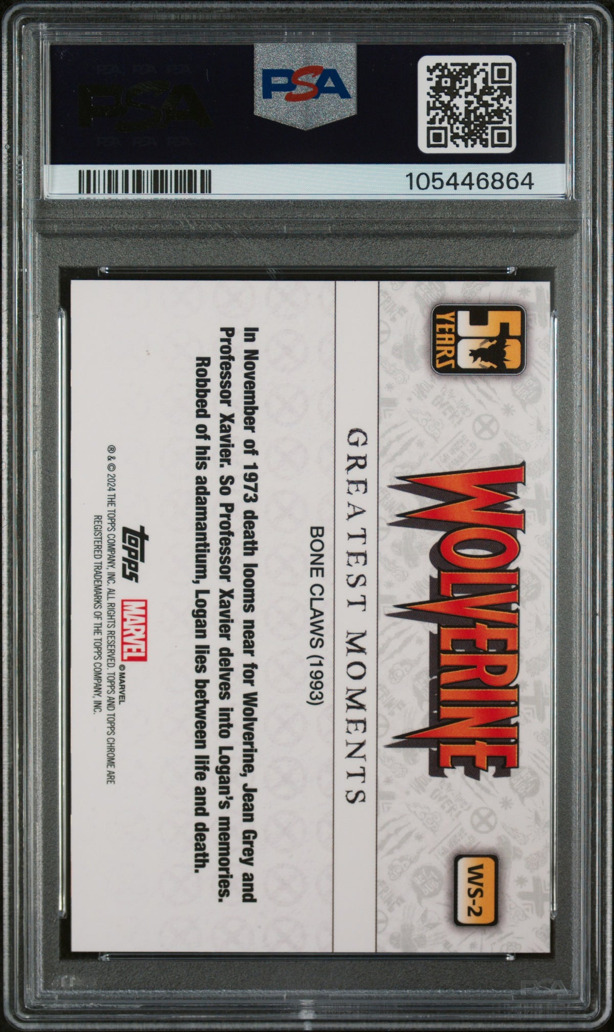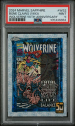 This card is not just another collectible, it is a token of Wolverine's celebrated journey, capturing one of his 'Greatest Moments'. The card is professionally graded by PSA, one of the most reputable grading companies in the industry, and has received an outstanding grade of 9, denoting its mint condition.