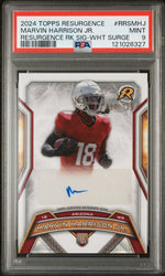 Key features of this gem include its Resurgence Rookie Signatures, the White Surge parallel design, an autograph from Marvin Harrison Jr., its unique serial number, PSA grading, and mint condition. This card is more than a collectible - it's a tribute to the beautiful game of football and a symbol of Harrison Jr.'s budding legacy.