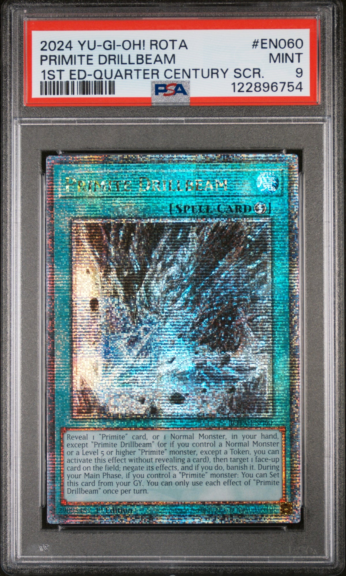 With its key features including its 2024 release, Yu-Gi-Oh! brand, mint condition, PSA grading, 1st Edition status, and being part of the Quarter Century SCR set, this Primite Drillbeam card is a treasure to behold. This truly is a golden opportunity to own a piece of Yu-Gi-Oh! history.