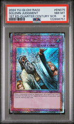 This Solemn Judgment card, with its Quarter Century Secret Rare status, is more than just a collector's item - it's a statement, a treasure, a piece of the game's legacy. Whether you're a long-time fan, a new enthusiast, or an avid collector, this card is a perfect addition to your collection. Immerse yourself in the world of Yu-Gi-Oh! with this iconic collectible, and let the game continue!
