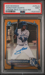 In summary, this 2025 Bowman Chrome Prospects Gold Parallel card of Jhonayker Ugarte is a prized possession for any serious collector or baseball enthusiast. With its autograph feature, limited serial number, and mint condition, it's more than just a card--it's a piece of baseball history! Don't miss the chance to add this gem to your collection.