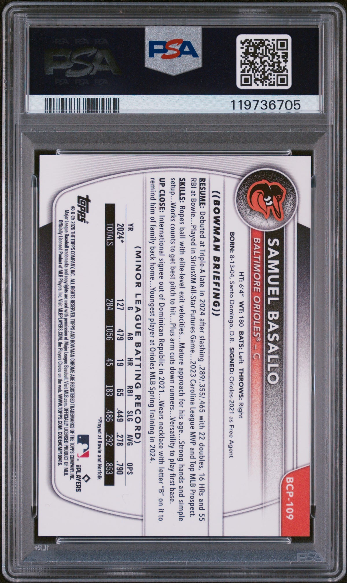 This Samuel Basallo card is not just a piece of cardboard; it's a piece of history, a testament to Basallo's prowess on the baseball field. Whether you're a die-hard Orioles fan, a Samuel Basallo enthusiast, or a collector who appreciates the rarity and beauty of top-tier sports cards, this card is an investment worth making. Add this gem to your collection today and revel in the pleasure of owning a piece of baseball history.