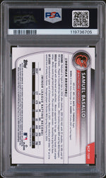 Feast your eyes on this extraordinary Samuel Basallo sports card from the esteemed Topps manufacturer. From the exclusive 2025 Bowman Sapphire Chrome Prospect set, card number BCP109, this gem is a treasure trove for any baseball card collector.