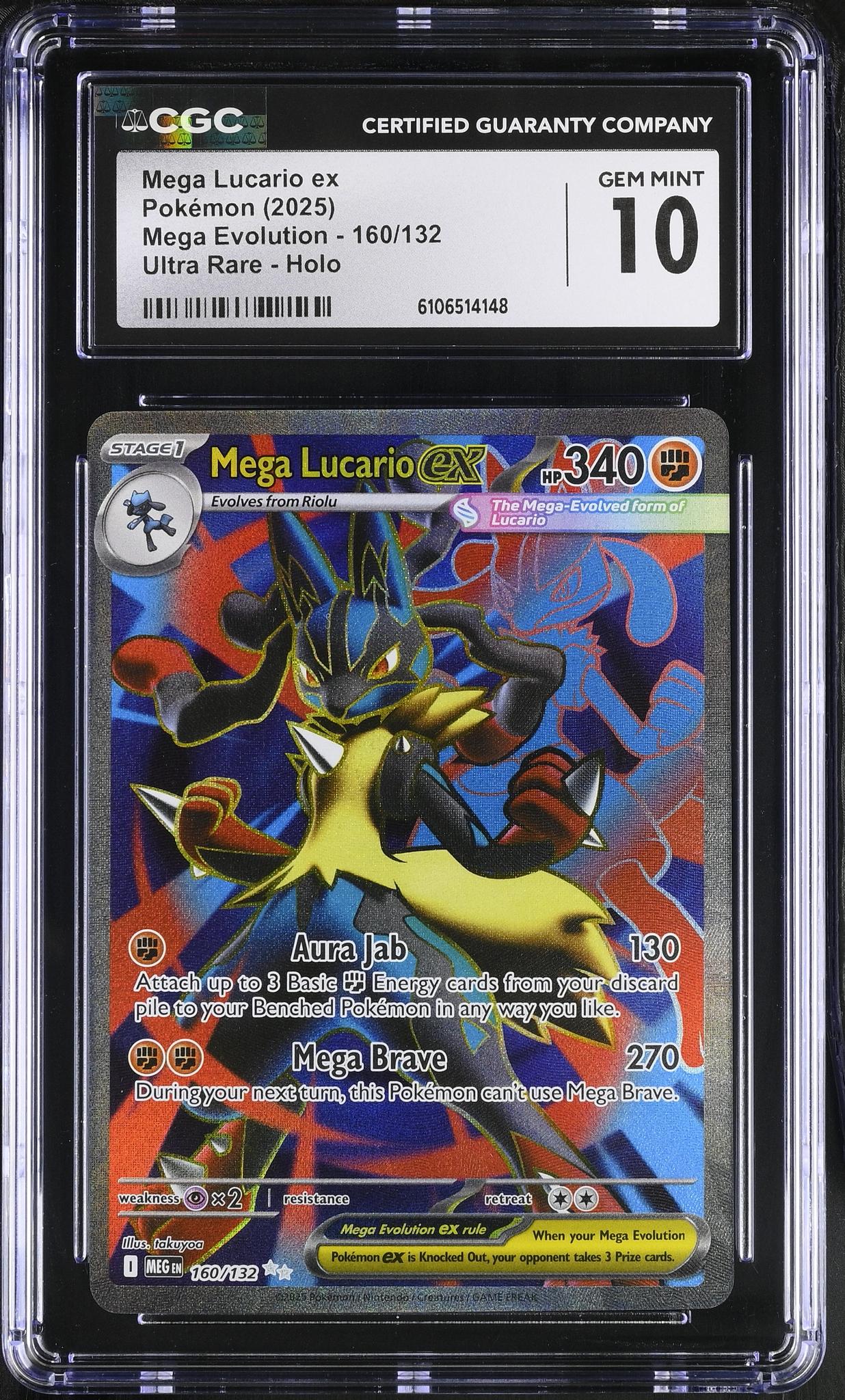 2025 Pokemon #160/132 Mega Lucario ex Mega Evolution CGC 10