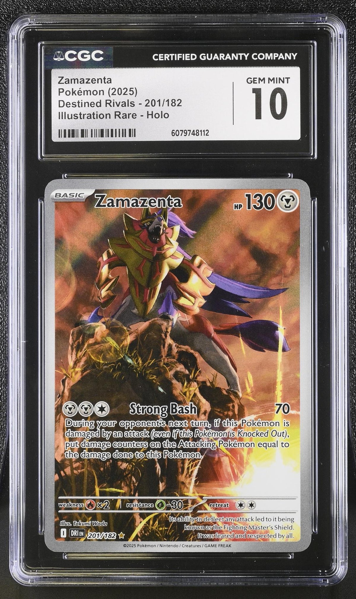 Step into the glorious world of Pokemon with this immaculate, highly sought-after 2025 Pokemon Zamazenta card from the Destined Rivals Set. This card, manufactured by the gaming giant Nintendo, is a true jewel in the Pokemon universe. The Zamazenta card is an illustration Rare - Holo finish, a testament to its rarity and uniqueness.