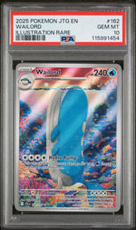 This 2025 JTG 162 Wailord PSA 10 card from the 'Illustration Rare JTG' set is a true rarity in the world of Pokemon collectibles. The key features of this card, including its 'Illustration Rare' status, PSA 10 Gem Mint condition, and association with the iconic character Wailord, make it a must-have for any serious Pokemon collector.