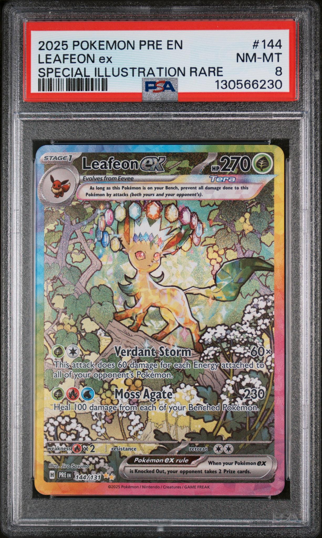2025 Pokemon Scarlet and Violet Prismatic Evolutions Special Illustration Rare Leafeon Ex #144 PSA 8