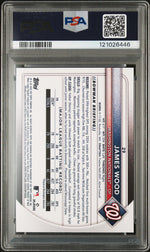 The card features James Wood, a shining star from the Washington Nationals, in his rookie year. A glimpse of this card is like a step back in time, allowing the viewer to relive the exciting moments of Wood's first MLB season. This card is not just a piece of memorabilia; it is a gateway to history and a tribute to Wood's talent and potential.