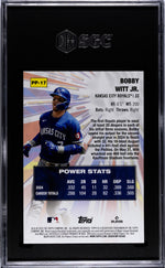 Immerse yourself in the world of baseball with this prestigious 2025 Topps Celebration PP-17 Bobby Witt Jr. card. Manufactured by Topps, a highly reputed name in the industry, this card is part of the coveted 'Power Players' insert set.