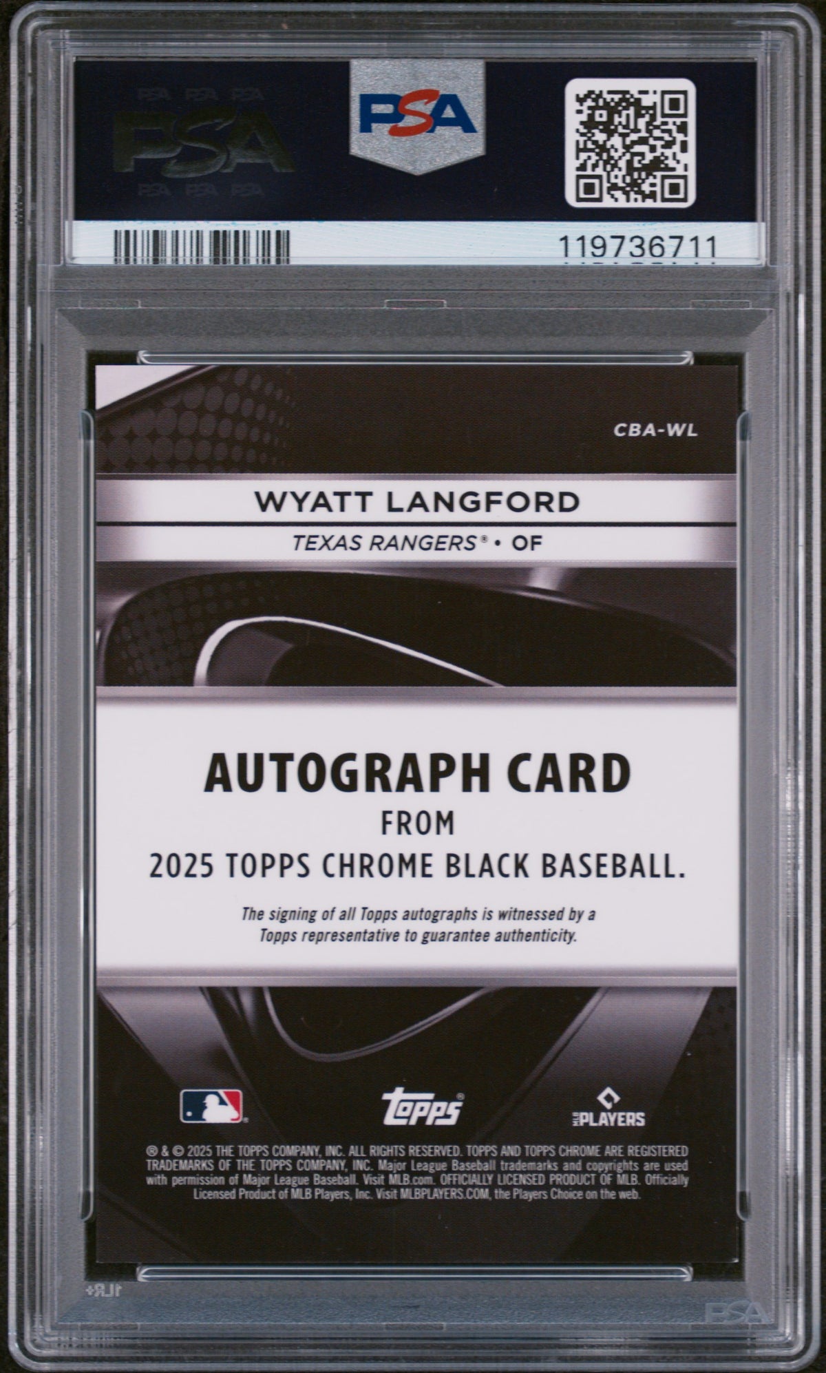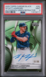 2025 Topps Chrome Black Green Refractor Wyatt Langford #CBA-WL Auto /99 PSA 9