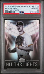 Unleash your inner collector with this Paul Skenes 2025 Topps Chrome Black HTL-22 card - a testament to the future of MLB and a tribute to the timeless art of card collection. Don't miss out on owning a piece of baseball history!