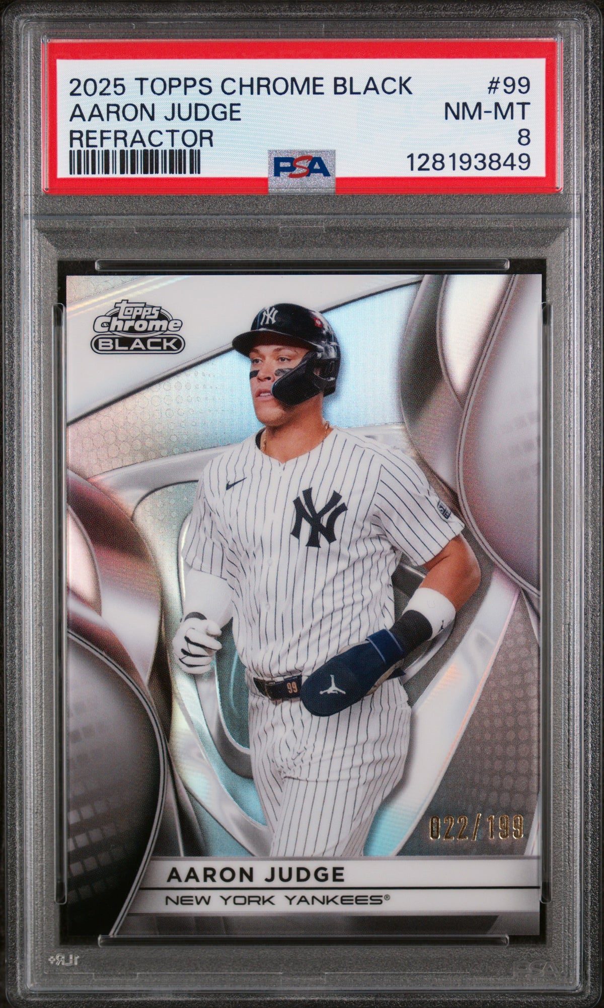 In conclusion, this 2025 Topps Chrome Black #99 Aaron Judge card is more than just a piece of cardboard--it's a token of sports history, a symbol of a player's legacy, and a valuable addition to your collection. It's not just a card, it's a conversation starter, a piece of art, and an investment. Don't miss out on the opportunity to own this treasure!