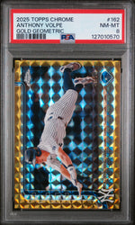 This card captures a moment in sports history, encapsulating the talent and spirit of Anthony Volpe. It's far more than just a collectible item, it's a piece of the rich tapestry of baseball. Whether you're a die-hard Yankees fan, an ardent follower of Anthony Volpe, or a sports card enthusiast, this 2025 Topps Chrome Gold Geometric Anthony Volpe card is a must-have addition to your collection.