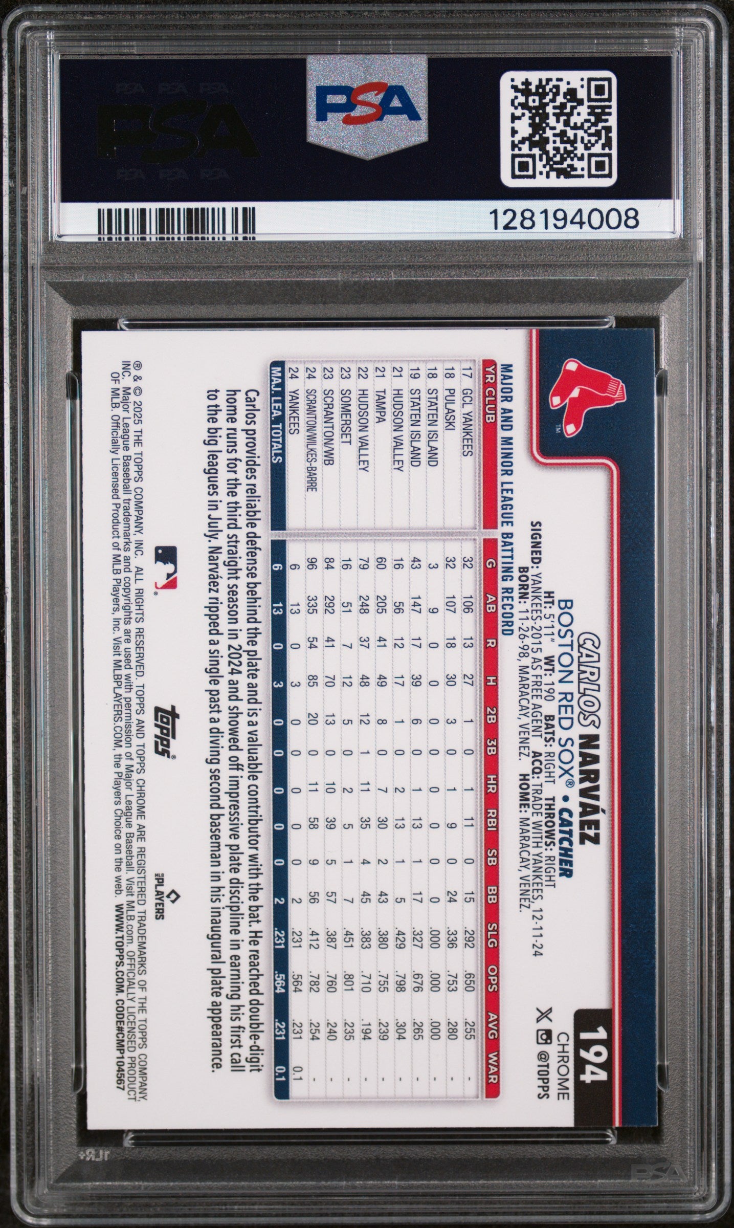 2025 Topps Chrome Lightboard Logo Variation Carlos Narvaez #194 PSA 9