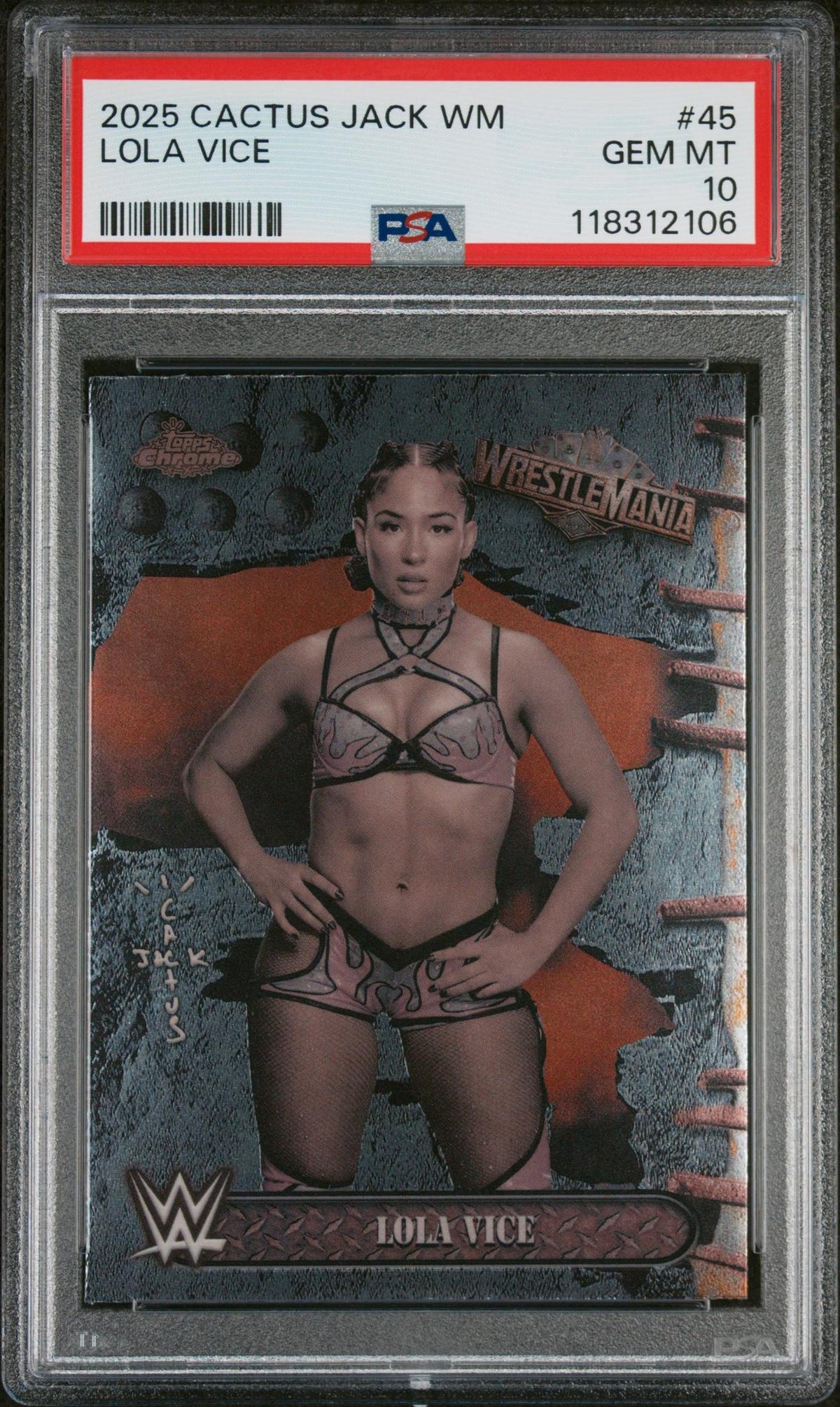 Issued under the Topps Chrome brand, this card is numbered 45, adding a layer of exclusivity to it. While it doesn't carry an autograph, its high-grade quality and association with a wrestling powerhouse like Lola Vice amplify its appeal multifold.