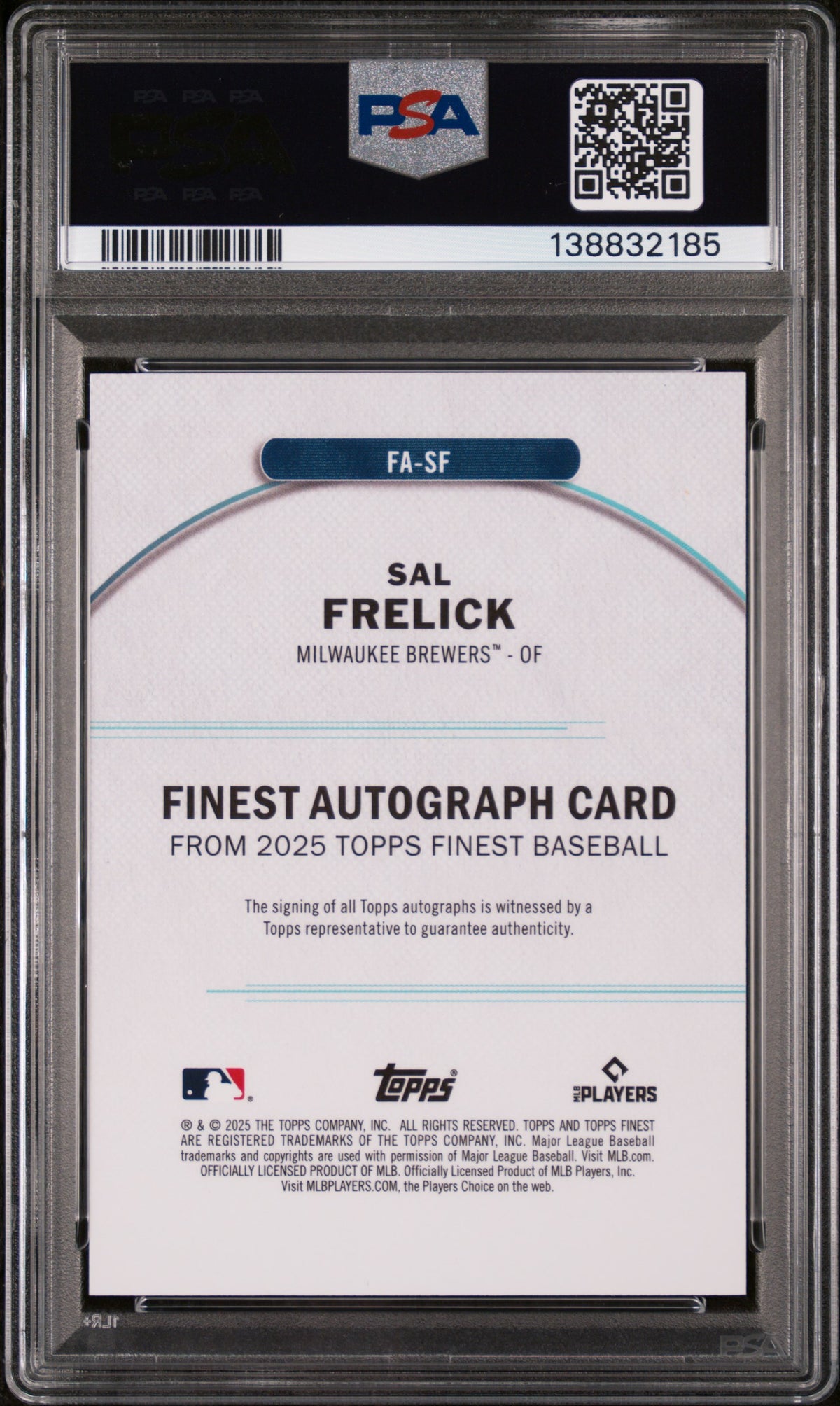 Step into the world of baseball with this exceptional Sal Frelick sports card, brought to you by the renowned Topps Finest. This gem hails from the year 2025, bearing the card number SF from the esteemed Finest Autograph Insert Set.