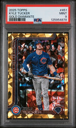 This 2025 Topps #451 Kyle Tucker Gold Diamante card is more than just a piece of cardboard; it's a piece of baseball history. The key features of this card include its Gold Diamante insert, mint condition, PSA grading, and its limited edition status with a serial number of 30/50. This card is not just a keepsake, but a treasure that encapsulates the spirit of the game and the legacy of Kyle Tucker. Don't miss the chance to own this remarkable piece of sports memorabilia.
