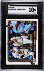 Released under the eminent Topps brand known for its high-quality sports memorabilia, this card is a testament to the manufacturer's dedication to detail and quality. It commemorates the athletic prowess and sheer talent of these National League Leaders, making it an exceptional piece of sports history.