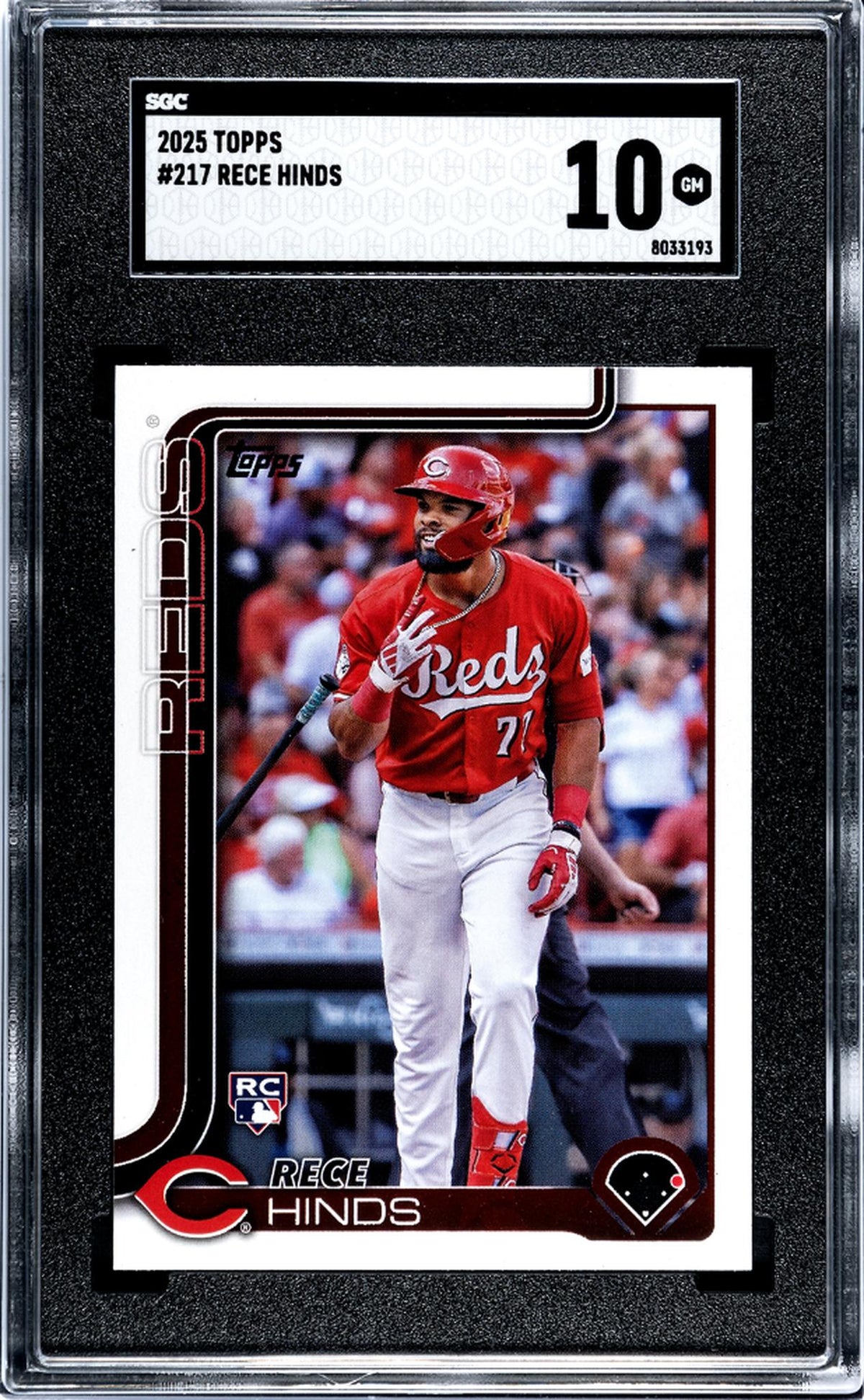 The card, numbered 217, is part of the 2025 Topps Baseball set, a must-have for any serious collector. Its key features include its rookie card status, Gem Mint condition, and the association with the Cincinnati Reds and Rece Hinds. It's a piece of baseball history, and a tangible tribute to the thrilling sport itself.