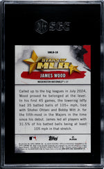 The card hails from the Topps 'Stars of MLB' set, a series renowned for celebrating the shining stars of Major League Baseball. The spotlight here is on James Wood, a rising star who has made his mark in the MLB, proving his mettle with the Washington Nationals. The fact that this is a rookie card adds an extra layer of allure as it represents the dawn of Wood's professional career.